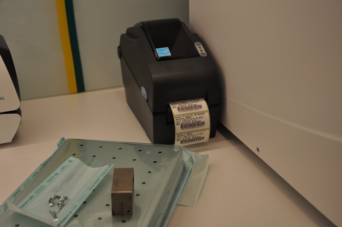 Chaque sachet stérile d’instruments reçoit une étiquette. Ainsi référencé, il permet grâce à un scanner spécifique de reporter toutes les informations de stérilisation dans le dossier informatique du patient. Nous savons ainsi la nature exacte de tous les éléments utilisés pendant la séance de soins.